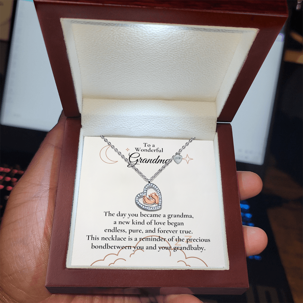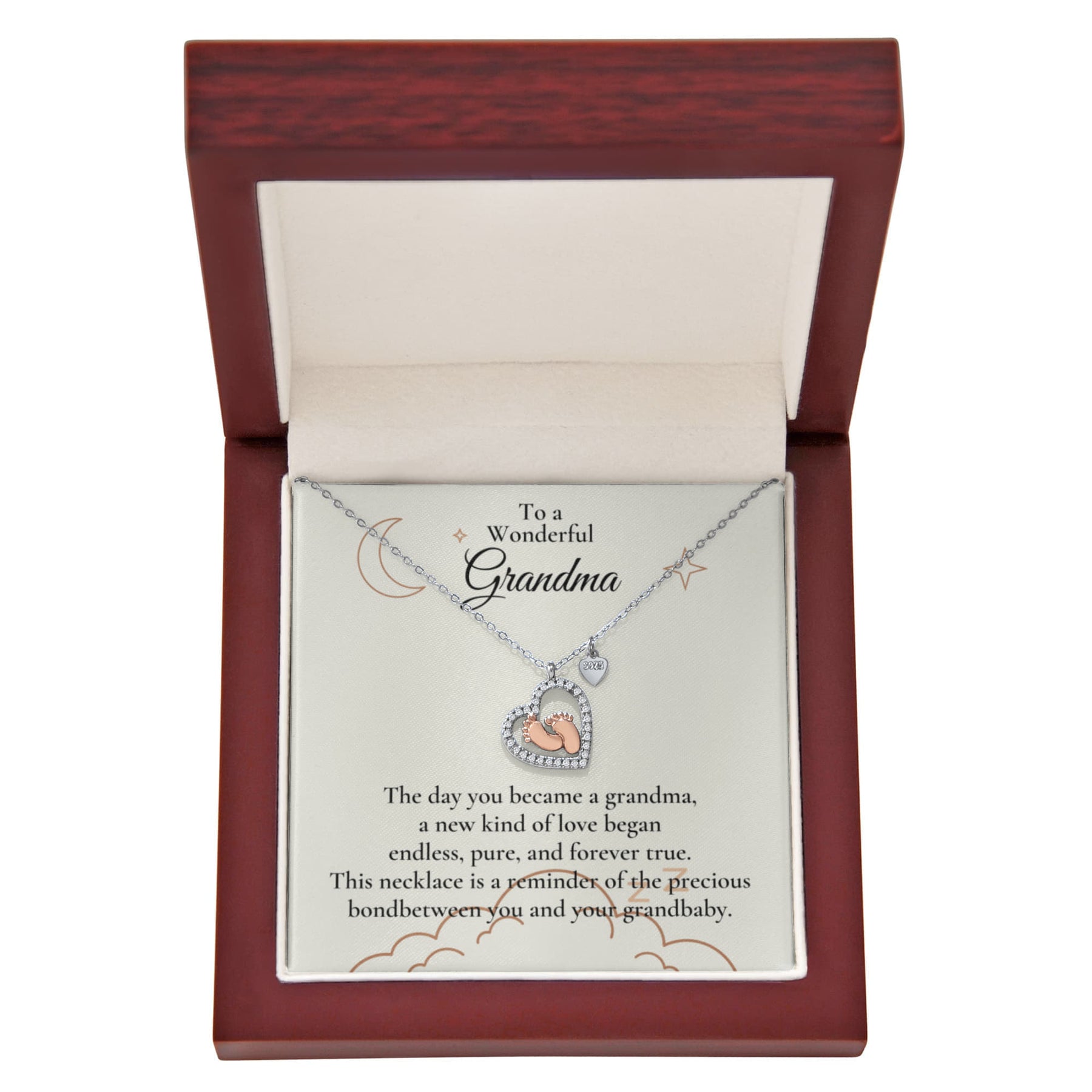Imagine her reaction receiving this heartfelt symbol of love, family, and precious beginnings. The Baby Feet Heart Necklace features a sparkling heart-shaped frame adorned with shimmering cubic zirconia, surrounding a delicate pair of rose gold baby feet. A touching tribute to motherhood and new life, this necklace is the perfect way to celebrate a new mom, a cherished child, or a growing family.