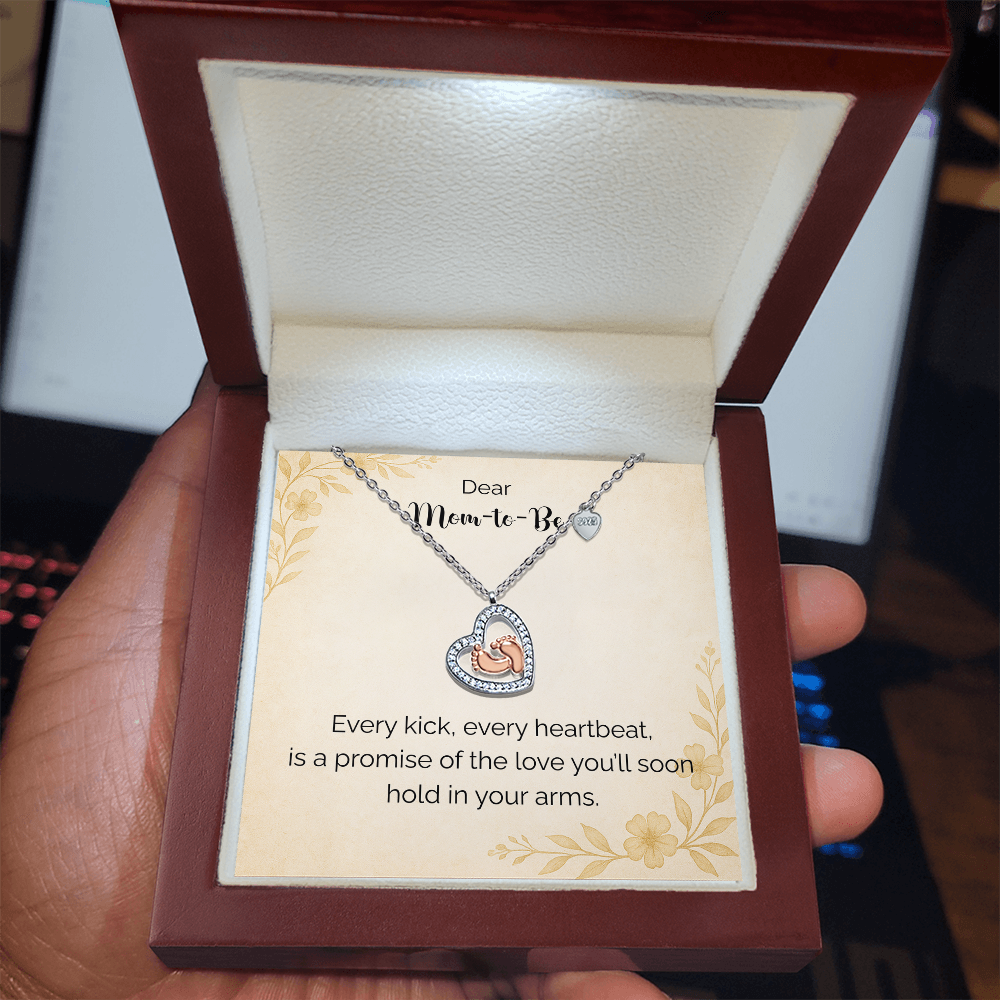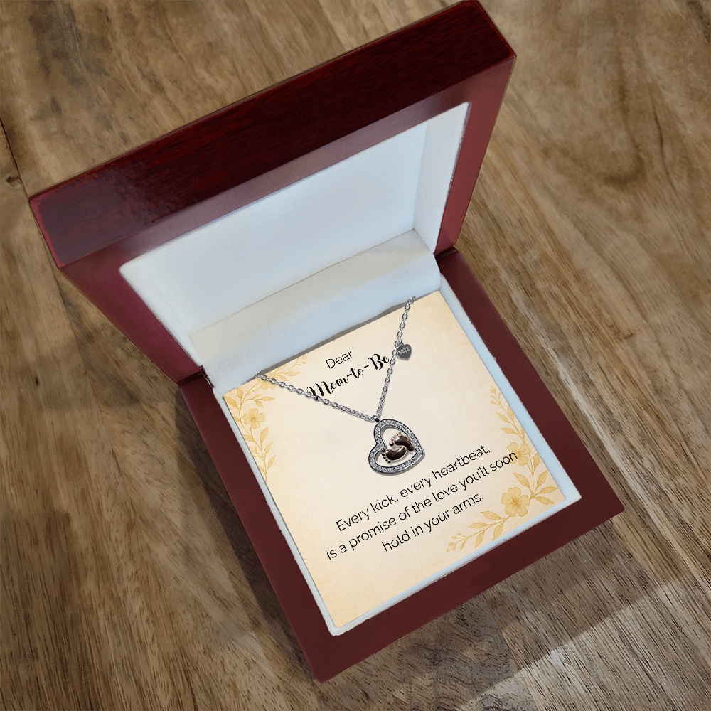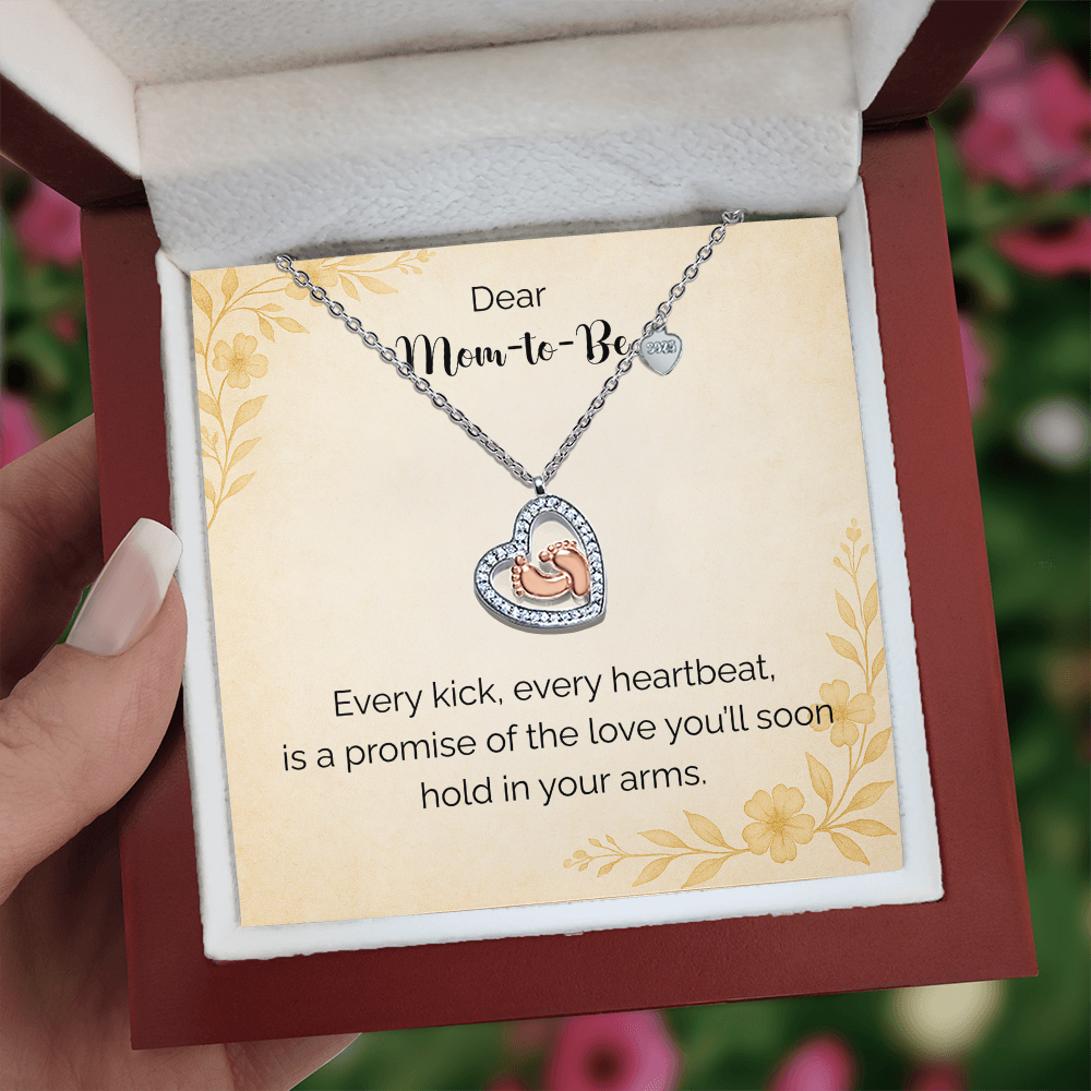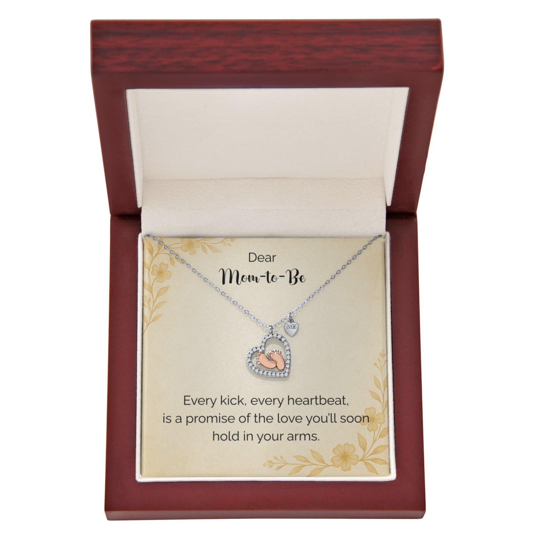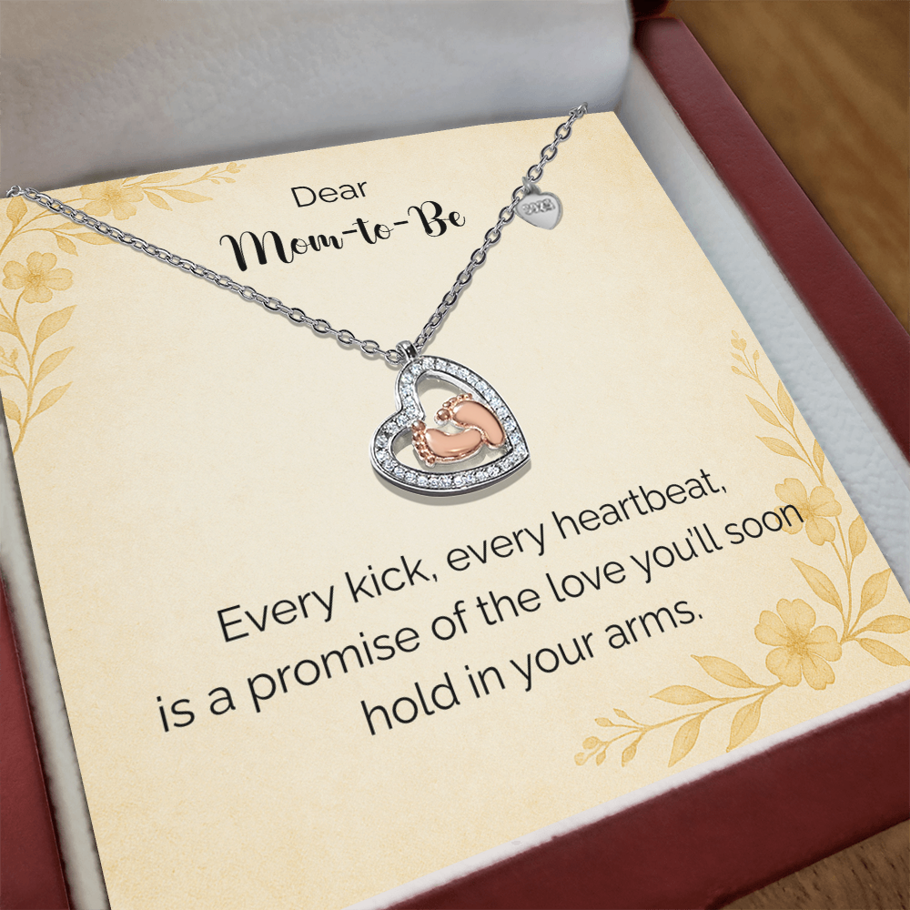Imagine her reaction receiving this heartfelt symbol of love, family, and precious beginnings. The Baby Feet Heart Necklace features a sparkling heart-shaped frame adorned with shimmering cubic zirconia, surrounding a delicate pair of rose gold baby feet. A touching tribute to motherhood and new life, this necklace is the perfect way to celebrate a new mom, a cherished child, or a growing family.