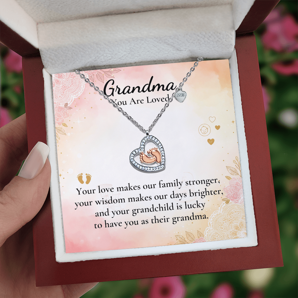 Imagine her reaction receiving this heartfelt symbol of love, family, and precious beginnings. The Baby Feet Heart Necklace features a sparkling heart-shaped frame adorned with shimmering cubic zirconia, surrounding a delicate pair of rose gold baby feet. A touching tribute to motherhood and new life, this necklace is the perfect way to celebrate a new mom, a cherished child, or a growing family.