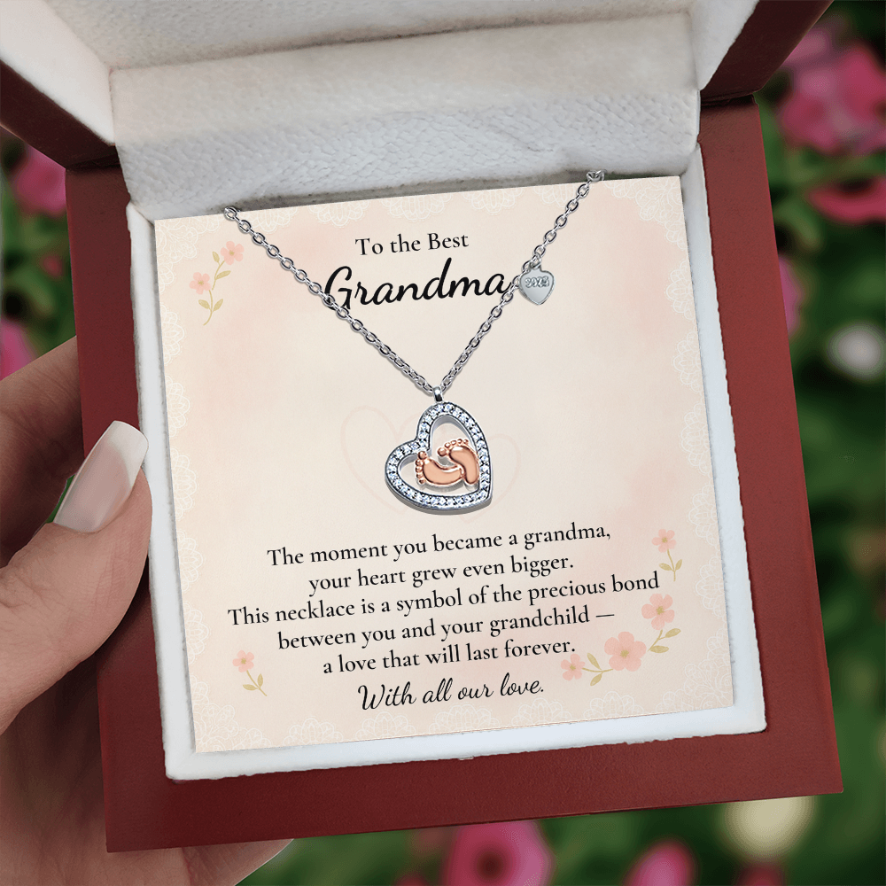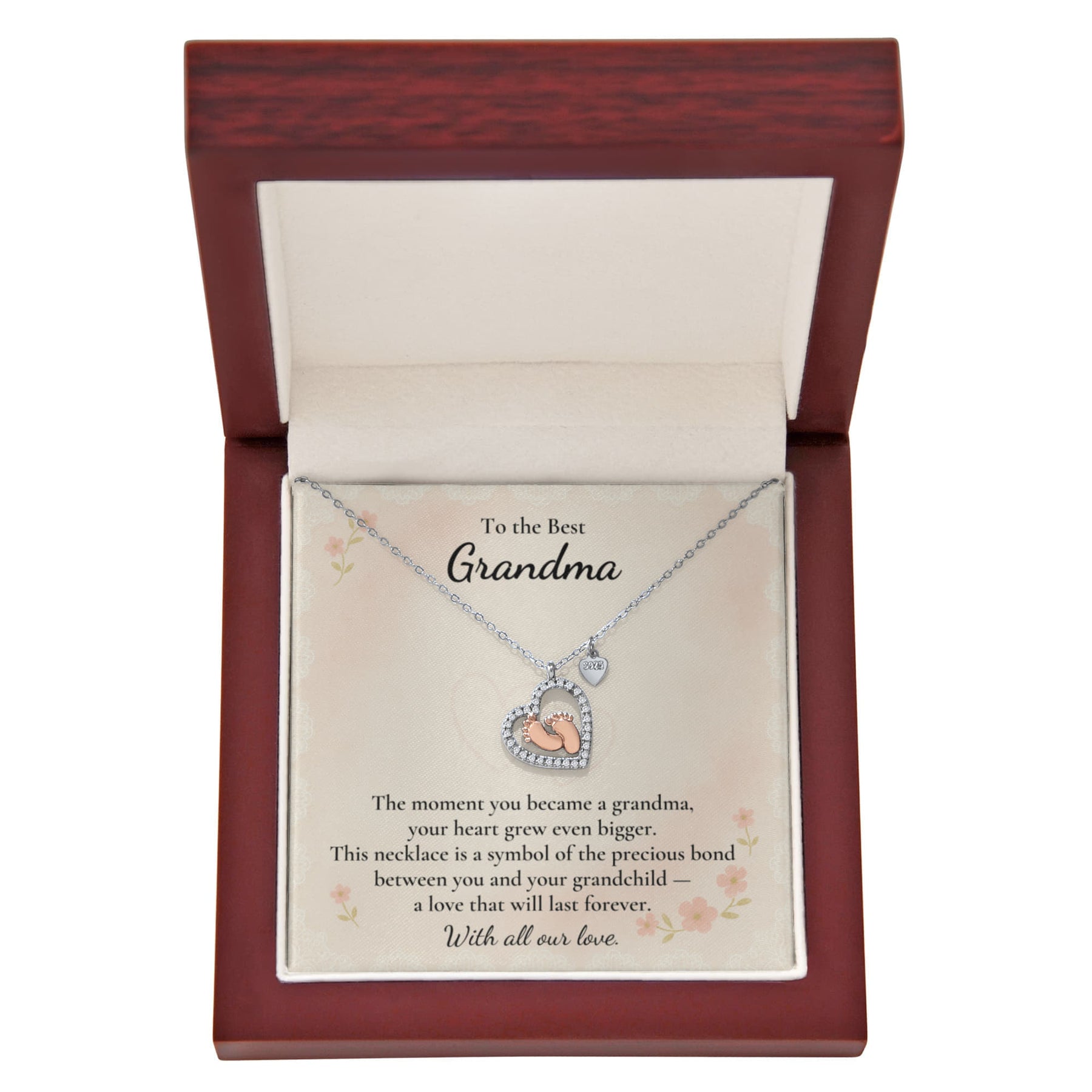 Imagine her reaction receiving this heartfelt symbol of love, family, and precious beginnings. The Baby Feet Heart Necklace features a sparkling heart-shaped frame adorned with shimmering cubic zirconia, surrounding a delicate pair of rose gold baby feet. A touching tribute to motherhood and new life, this necklace is the perfect way to celebrate a new mom, a cherished child, or a growing family.